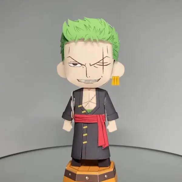 This kit gives you a premium, pre-printed paper craft figure of Roronoa Zoro. Each part is printed on thick, high-quality paper for sharp colors, strong folds, and a hassle-free assembly. No downloads, no home printing — everything arrives ready to cut and build.